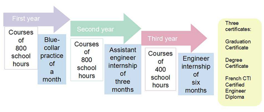 According to the characteristics of the engineer training in France and the CTI certification requirements, the curriculum focuses on the characteristics of the engineering field and the demands of enterprises, combines with the course characteristics of Tianjin University, and widens scope of professions. The curriculum is systematic and extensive. It not only ensures the necessary theoretical basis, but also has extensive adaptability and relative stability, helping the masters of engineering to construct compound knowledge structure and ability structure in a limited time. Master of Engineering focuses on engineering applications, primarily complex high-level engineering and project management talents for enterprises. The curriculum aims to cultivating comprehensive quality and ability, and includes interdisciplinary, frontier, information-related and applied courses. Foreign language courses focus on the cultivation of students' foreign language application ability and practicality. The professional courses emphasize on the acquisition and practice of new technology, new methods and new techniques in the field with a moderate increase in economics, management and art courses.