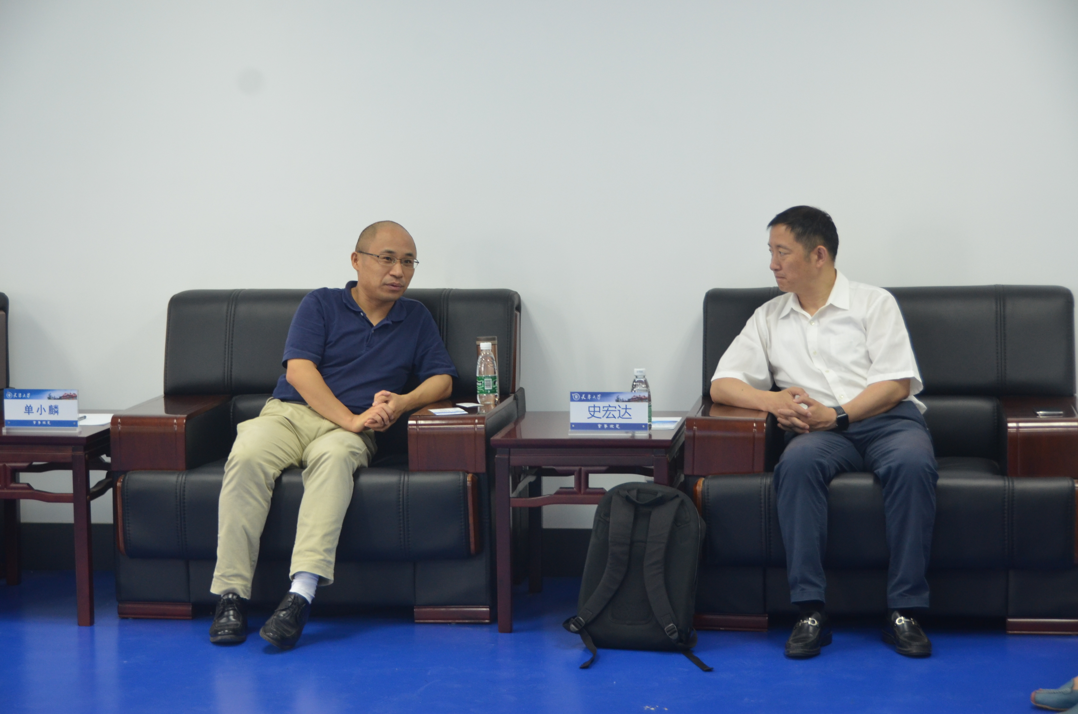 (Correspondent: Liu Yingtong) On July 10, 2018, Shi Hongda, executive vice dean of postgraduates’ school, Liang Bingchen, vice dean of engineering school, Liu Haibo, director of training office, postgraduates’ school, Qu Haipeng, vice director of computer specialty, information school, Zhang Hesheng, principal of Sino-France program of computer specialty and Mei Tao, secretary of training office, postgraduates’ school of Ocean University of China came to Tianjin International Engineering Institute for survey and exchanges. Shan Xiaolin, party secretary, Guan Jing, vice director of Qiushi Honors College, Tianjin University received their coming at Meeting Room 204, TIEI building and jointly held a discussion.