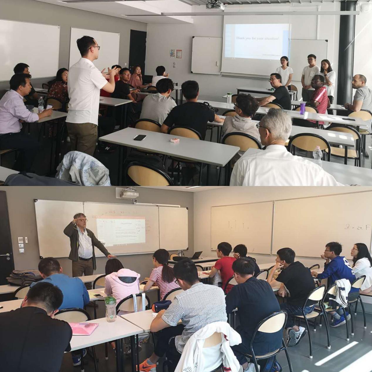 After that, TIEI teacher group met with and showed warm greetings to the students for internship in France. Hu Qinghua, teacher of specialty computer represented all the teachers to send hopes and wishes to all the students attending the France internship this time, and urged them to pay attention to the personal security issues for several times during their period of France internship. Finally, TIEI teacher group went to the classroom of Polytech Nice-Sophia to listen to the research report of the team in Polytech Nice-Sophia and gave comments to them one by one.