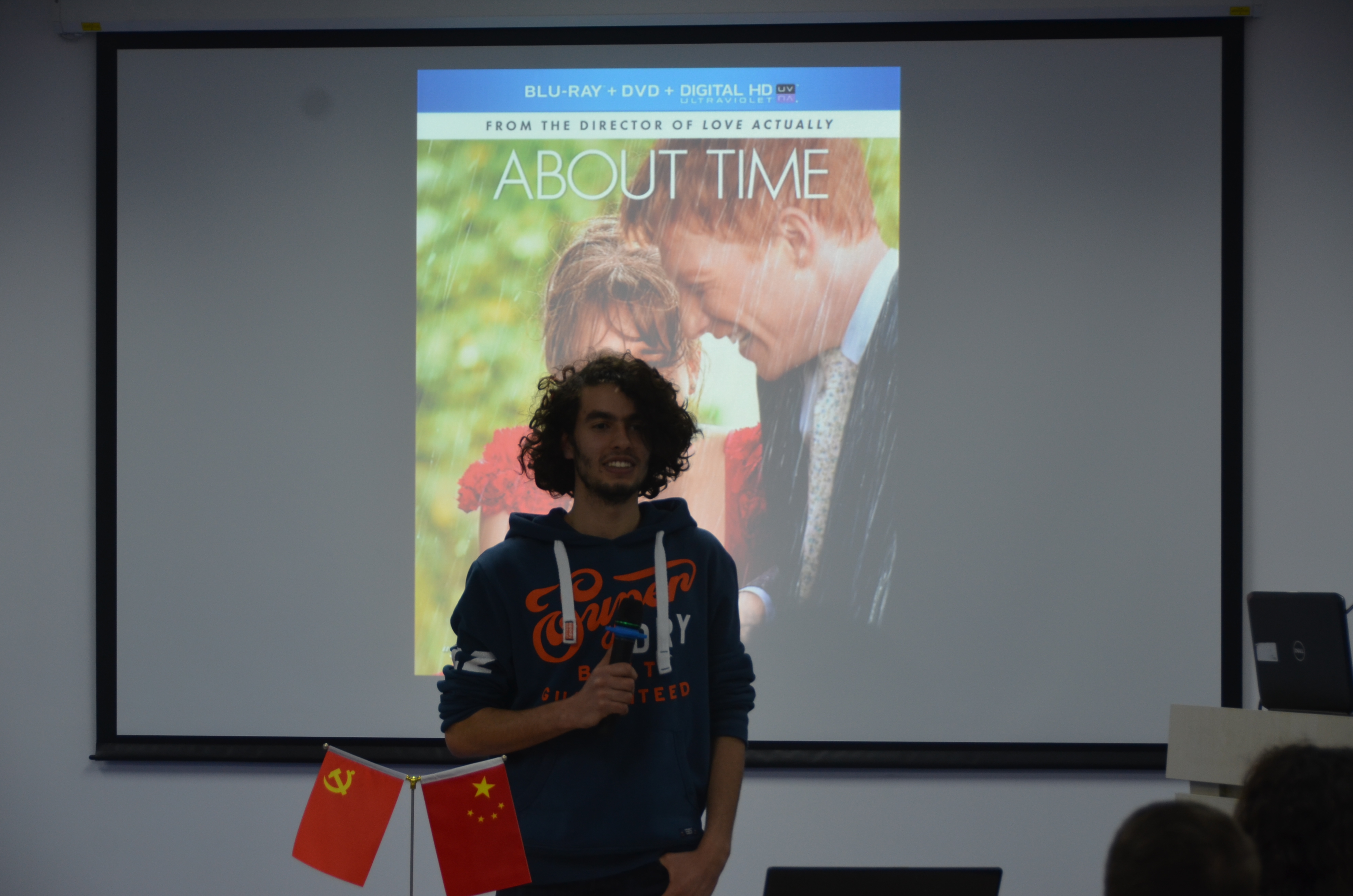 And then we watched the movie over. Yassine put forward a question “butterfly effect”, and taught the words pronunciation with some French knowledge. Everybody, around the question“If you had the ability to travel in time, what would you do?”shared their own thoughts with the others. TIEI student WangHaonan, around the topic “through the future”, shared his thoughts with the others. TIEI student XingLin shared her experience of going to France to take the internship. In the end of this activity, everybody hoped that they can have more communication with overseas students and they all look forward to the next French language activities.