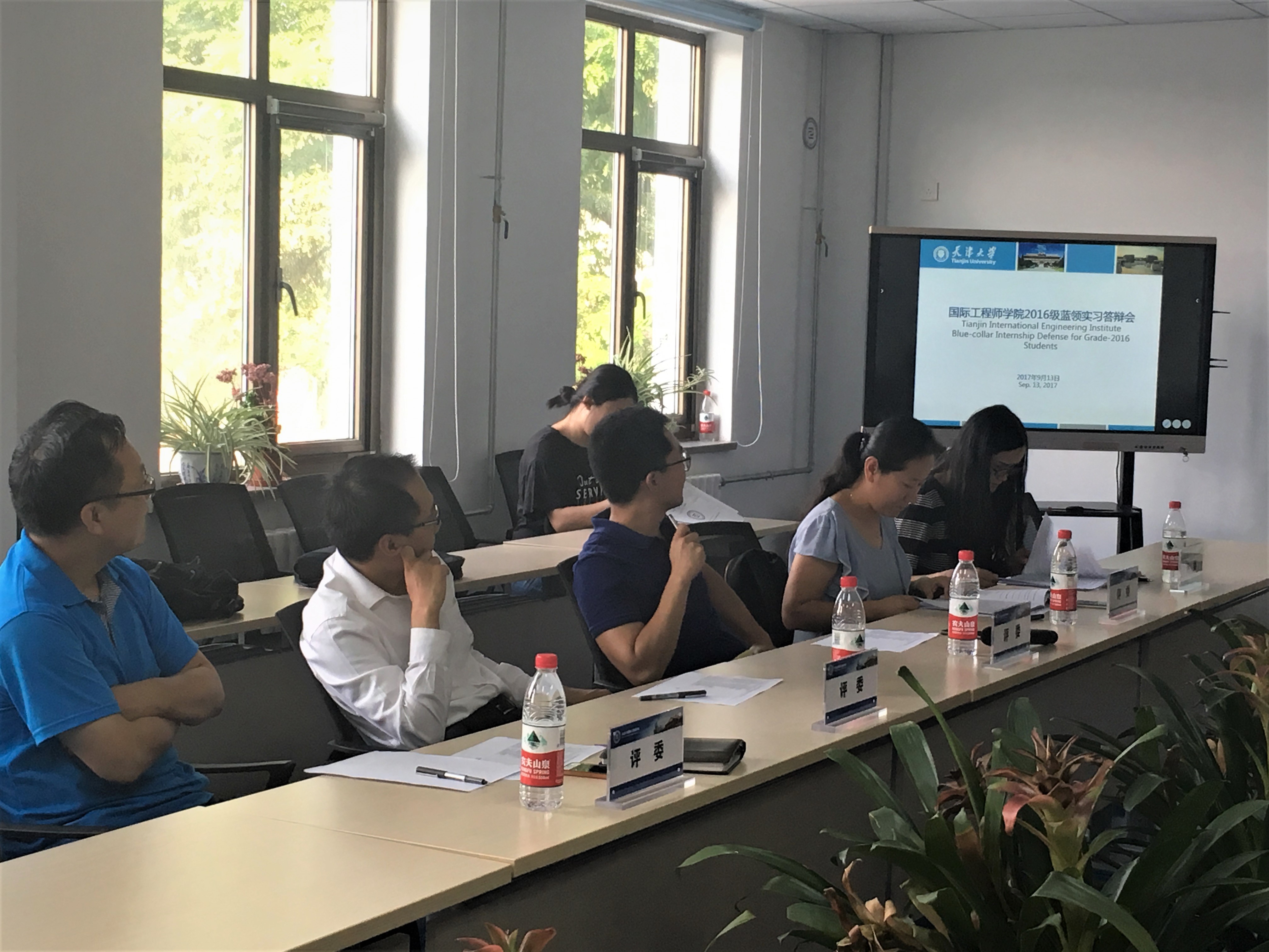 (Correspondent: Liu Yingtong) On September 13, 2017, Tianjin International Engineering Institute successfully held the defense for the 1st-phase internship --- blue-collar internship for the grade-2016 students. The tutor representatives of TJU from the specialties of computer science, electronics, architecture and civil engineering, and the enterprise tutors outside TJU attended this defense as the jury. All the grade-2016 students attended this defense.