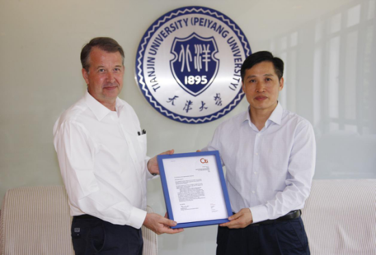 (Correspondent: Liu Yingtong) In the afternoon of August 21, 2017, Philippe GOURBESVILLE, president of Polytech Nice Sophia handed over TIEI Passing CTI Accreditation with the Highest Level to TJU president Zhong Denghua in the VIP room of the conference building. Shan Xiaolin, party secretary of TIEI, Wang Wei, vice director of TIEI, Yin Na, supervisor of Polytech Group EU Erasmus+ Program and the teacher representatives of the Chinese and French sides attended the meeting together.