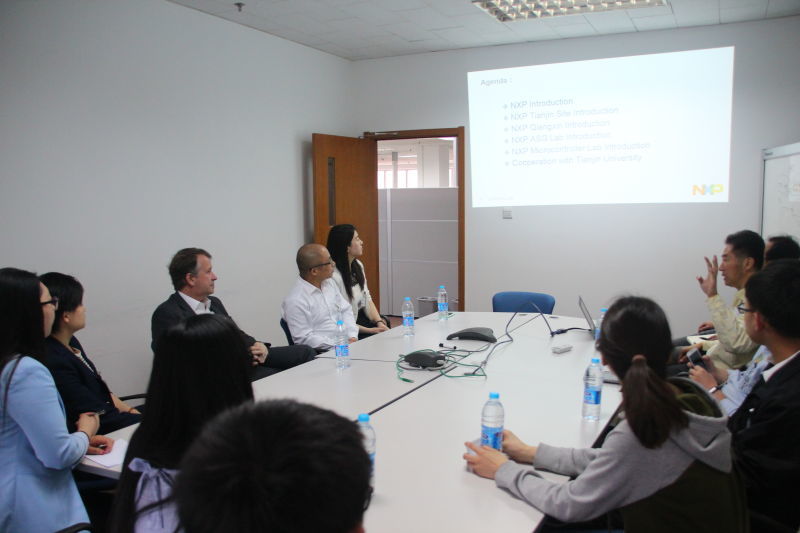 In the afternoon of April 27, 2016, the president of Polytech Nice-Sophia, Philippe Gourbesville, the Project Department director of French Polytechnic Group, Na Yin, the party secretary, Xiao lin Shan, and representatives of teachers and students came to visit NXP Semiconductor Research and Development Center. This activity aims to deepen the cooperation between our college and NXP, and to let college students have a better understanding of the work in the research and development center.