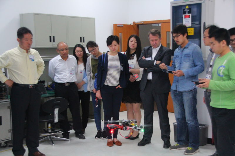 Asia operation senior general manager Zheng of Semiconductor Research and Development Center, Manager Shao of micro controller Laboratory and manager Joe of simulation application department, they led us go into the micro controller Department of laboratory and simulation laboratories, introduced the key products the team are researching and lived demonstration, student representatives carefully observe, Philippe Gourbesville president communicated with Research and Development Center Intern. Subsequently, in the meeting room of the Research and Development Center there held a forum, general manager Zheng introduced the actuality and development of Research and Development Center to the school, student representatives communicated with the intern about internship experience, and the two sides exchanged proposed constructive ideas and arrangements.