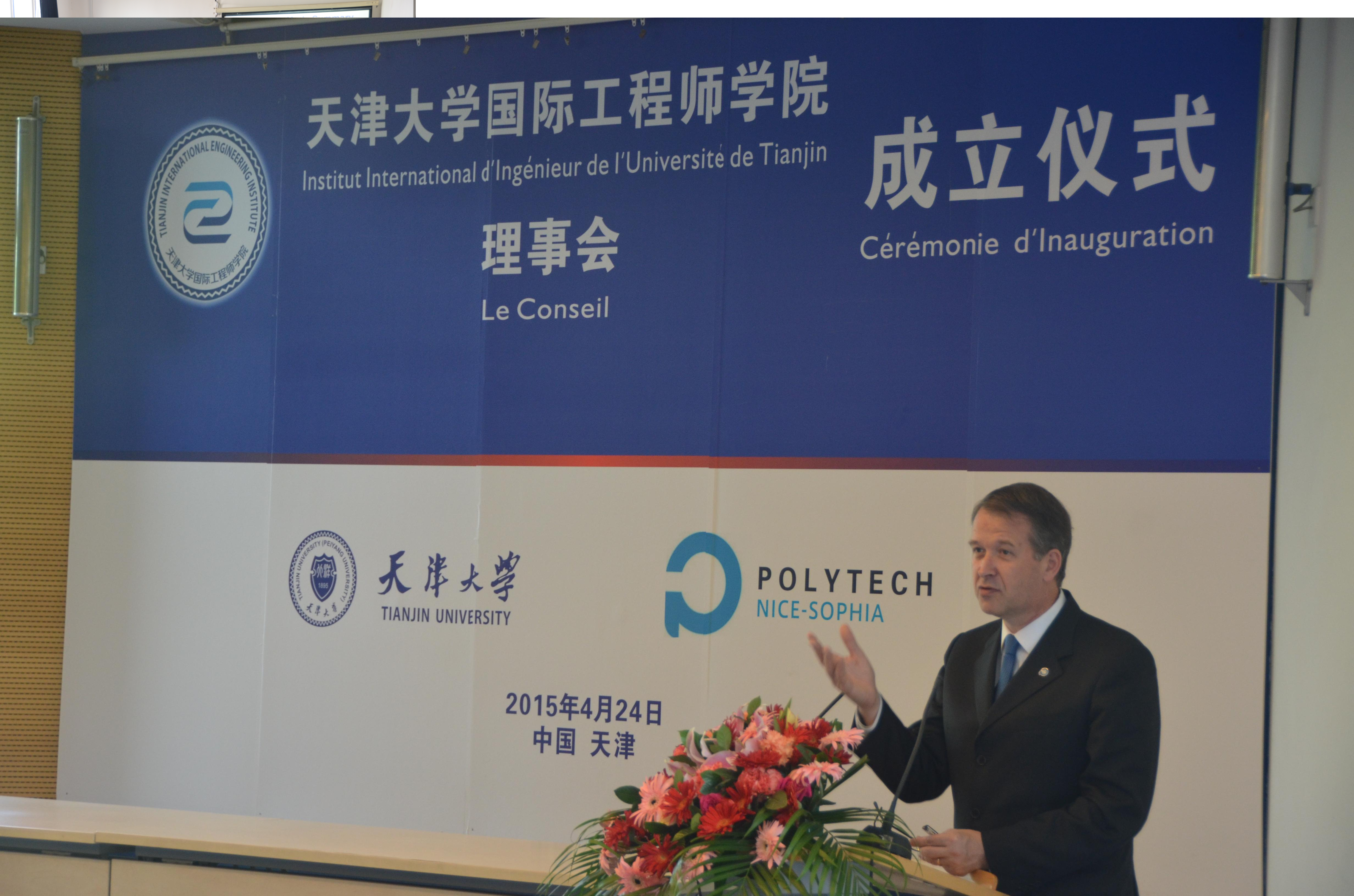 At the ceremony, the Board appointed the Director, Vice Directors and the members, a total membership of 38, including 25 representatives from Polytech Nice-Sophia and the industries. Professor Li Jiajun served as Chairman of the Board. All members of the Board discussed and adopted “The Charter of the Board of Directors of Tianjin International Engineering Institute”.