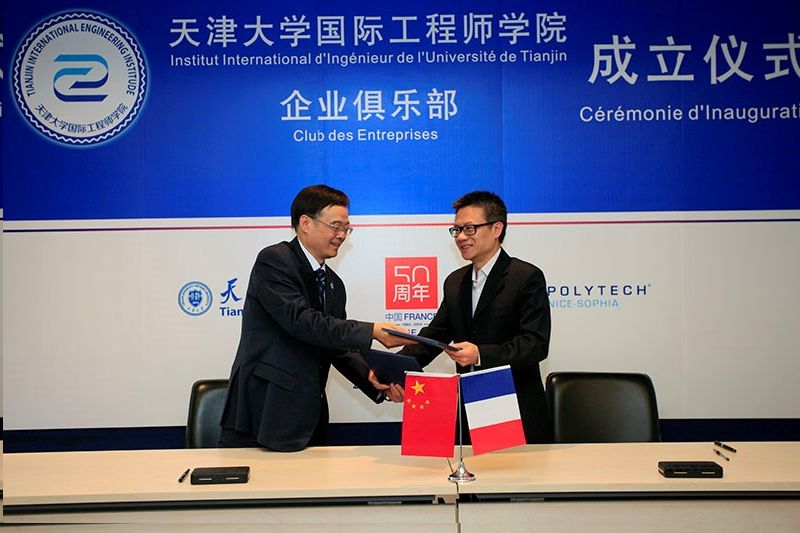 Recently, Tianjin University(TJU), famous for its engineering subjects, introduced the internationally recognized French mode of training engineers. It is a big step towards the higher engineering education reform. At the 50th anniversary of the establishment of diplomatic relations between China and France, Tianjin International Engineering Institute(TIEI) and the enterprise club held an inaugural ceremony on May 13 in the eighth conference room of the conference building. TIEI, as the cooperative fruit of Tianjin University and the French Polytech Nice-Sophia University, is aimed at training international engineering talents of high level as well as making further exploration on the reform in teaching, cooperation between universities and enterprises, organization of scientific research and so on.