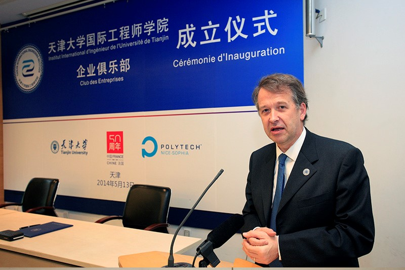 The French Embassy, the Polytech Group, the Ploytech Nice-Sophia University, Tianjin Alliance Francaise, the representatives from Tianjin High-tech Development Zone and Tianjin Educational Committee, the representatives from Freescale Semiconductor Company, Honeywell, Novo Nordisk Pharmaceutical Company and nearly 20 domestic and foreign well-known enterprises, Tianjin University’s president Li Jiajun, vice-president Yu Jianxing and president’s assistant Hu Wenping attended the ceremony.
