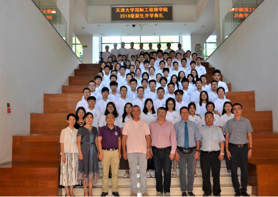 On9 September 2018, before the Teachers’ Day, the Tianjin International Engineering Institute holds 2018 freshmen ceremony at 8thmeeting room of conference building.Shan Xiaolin ,Party Secretary of Qiushi Honors of college, Chen Guanyi, director of Qiushi Honors of college and dean of Tianjin International Engineering Institute, Guan Jing, vice director of Qiushi Honors of college and vice director of Tianjin International Engineering Institute, Wang Wei, vice director of Qiushi Honors of college, Yu Qian, vice director of Qiushi Honors of college,Philippe Lorenzini ,theFormerAssociatePrincipleofPolytech’ Nice Sophia,MARC Gaetano, French teacher of Tianjin International Engineering Institute, and GILLES Jacquemod,French teacher of Tianjin International Engineering Instituteand Liu Gang, Principal of Building Specialtyof Tianjin International Engineering Instituteattend this ceremony. All the manage teachers of TIEI and all the 2018 freshmen attend this ceremony. This meeting is conducting by the 2018 freshmen in Chinese and in English and beginning with the solemn national anthem.