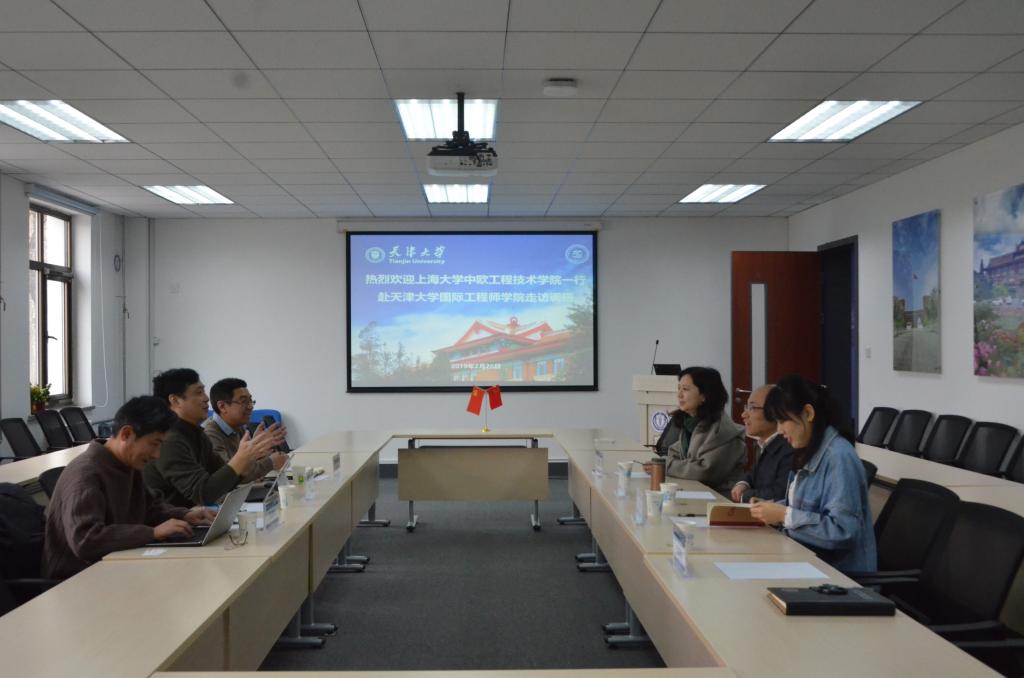 On February 26, Mr. Liu Wanyu, Dean of Universities of Technology Sino-European of Shanghai University, Mr.Lei Zuosheng and Mr.Zhang Jianhua, Vice Dean, visited TIEI. Mr. Shan Xiaolin, Party Secretary of TIEI, Prof. Guan Jing, Vice Dean, Educational Administer, Ms. Wang Wenjie and propaganda and financial secretary Ms. Liu Yingtong received the delegation and had a discussion.