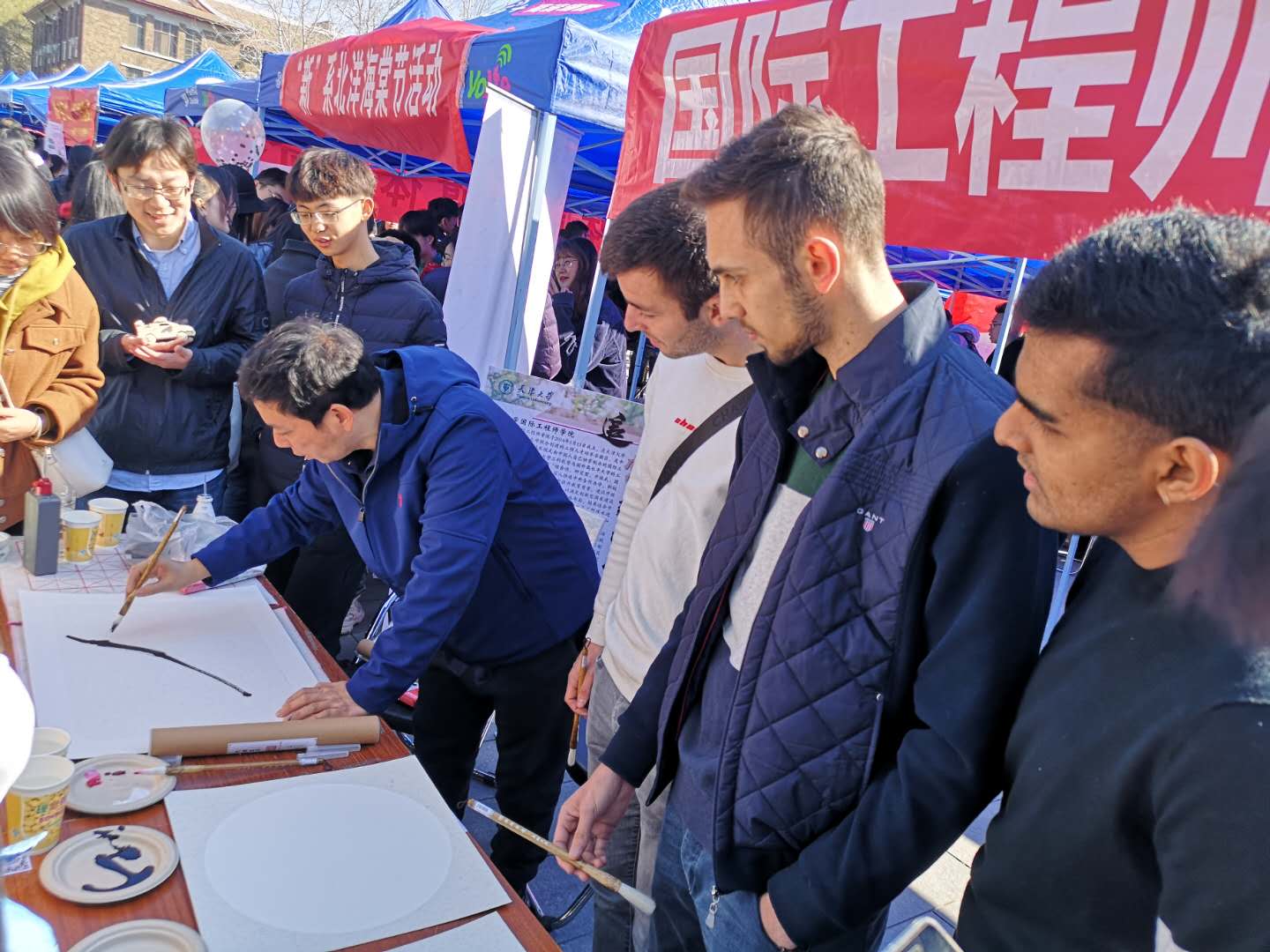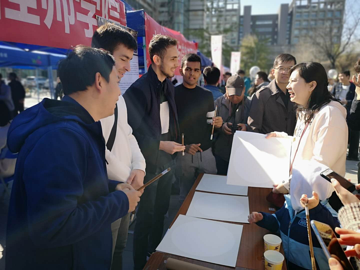 The new coming foreign teacher Mohamad received his first Chinese gift.