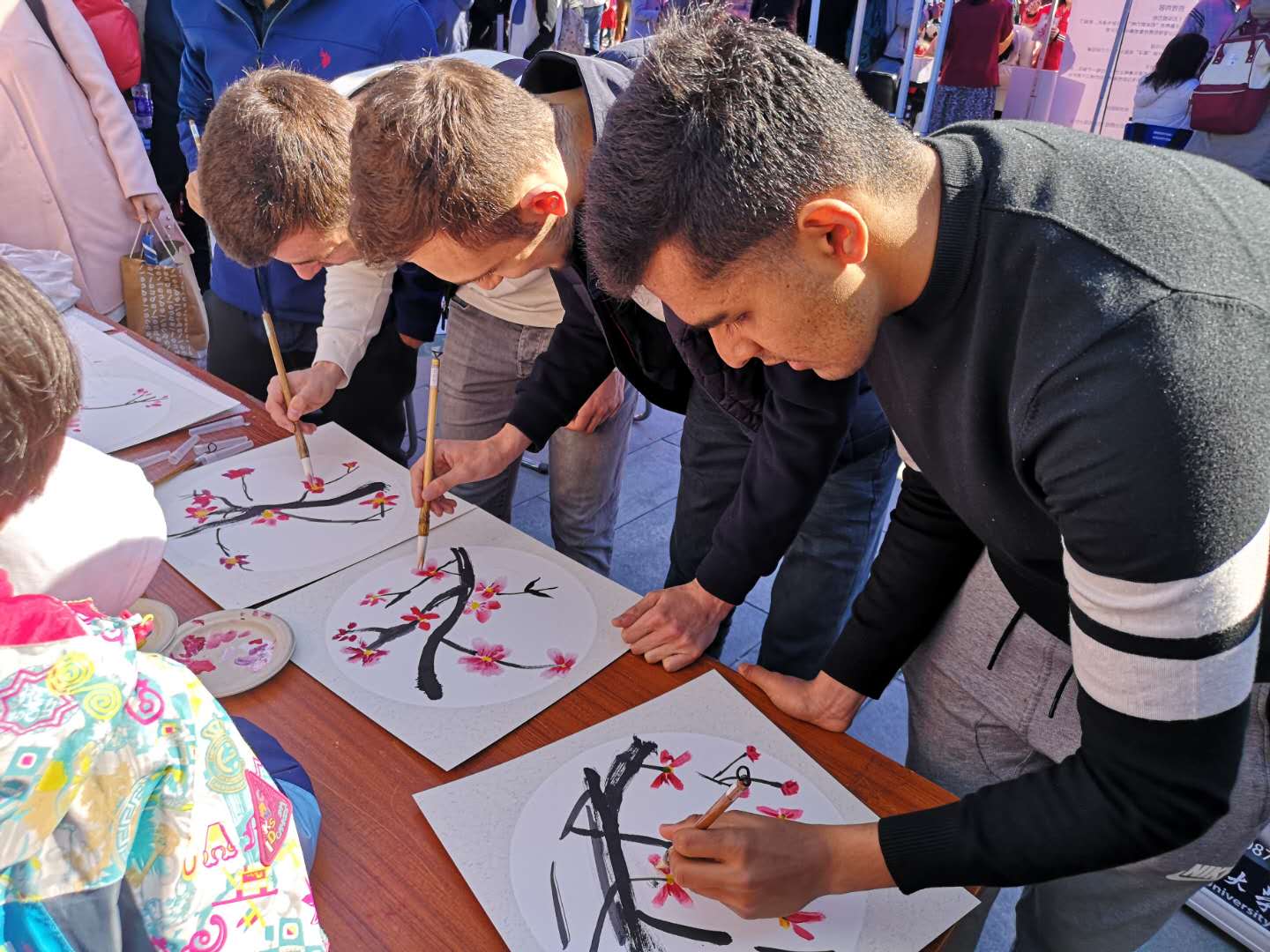 French exchange students complete their painting under the careful guidance of the painting and calligraphy teacher Fu Gang.