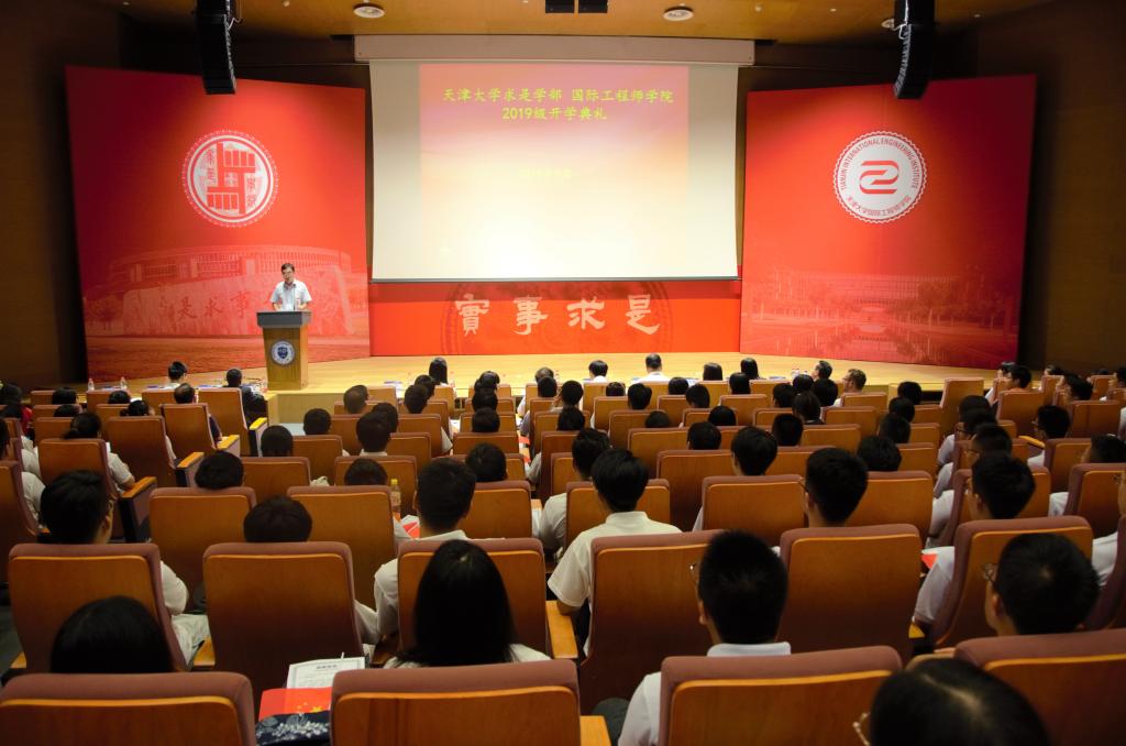 On the afternoon of September 8, the opening ceremony for Grade 2019 freshmen of QHC and TIEI was held at the Zheng Dong Library of Peiyang Campus. Gong Jinlong, member of the Standing Committee of Party Committee and Vice President of Tianjin University, Gu Peihua, Director of the Emerging Engineering Education Center of Tianjin University, Wang Pengpeng, NXP’s System Engineering Department Director, Zhen Meili, Tata Consultancy Services (Tianjin) Co.,Ltd. Human Resources Manager, Chen Guanyi QHC and TIEI Dean, Wang Wei, QHC deputy Party Secretary and Vice Dean, Guan Jing, Vice Dean of TIEI, Yu Qian, Vice Dean of QHC, Marc Gaetano, TIEI foreign teacher representative, and all the staff and 2019 freshmen attended the meeting. The ceremony was presided over by Wang Wei.