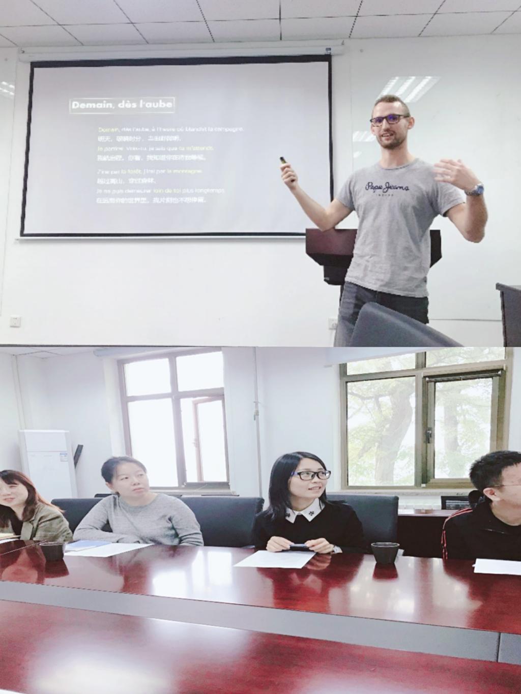 In the afternoon of October 18, Hugo, an exchange student from France, shared Victor Hugo’s poem “Demain, dès l'aube ”with teachers and students of TIEI. Let’s enjoy the charm of French poetry!