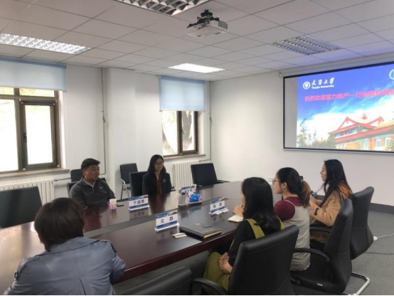 On October 16, 2018, Vice General Manager of Tianjin Fuli City Real Estate Development Co., Ltd. Yu Liqing and Yang Benyan, Manager of Human Resources Department, went to Tianjin International Engineering Institute (TIEI) for investigation and communication. Guan Jing, Vice Dean, Chen Wei, Student Advisor, and Enterprise Club Commissioner Liu Yang and Wang Yina of TIEI made a reception and discussion with the representative of Tianjin Fuli City Real Estate Development Co., Ltd. in Conference Room 204 of TIEI Building.