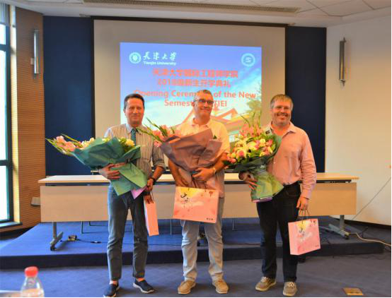On9 September 2018, before the Teachers’ Day, the Tianjin International Engineering Institute holds 2018 freshmen ceremony at 8thmeeting room of conference building.Shan Xiaolin ,Party Secretary of Qiushi Honors of college, Chen Guanyi, director of Qiushi Honors of college and dean of Tianjin International Engineering Institute, Guan Jing, vice director of Qiushi Honors of college and vice director of Tianjin International Engineering Institute, Wang Wei, vice director of Qiushi Honors of college, Yu Qian, vice director of Qiushi Honors of college,Philippe Lorenzini ,theFormerAssociatePrincipleofPolytech’ Nice Sophia,MARC Gaetano, French teacher of Tianjin International Engineering Institute, and GILLES Jacquemod,French teacher of Tianjin International Engineering Instituteand Liu Gang, Principal of Building Specialtyof Tianjin International Engineering Instituteattend this ceremony. All the manage teachers of TIEI and all the 2018 freshmen attend this ceremony. This meeting is conducting by the 2018 freshmen in Chinese and in English and beginning with the solemn national anthem.