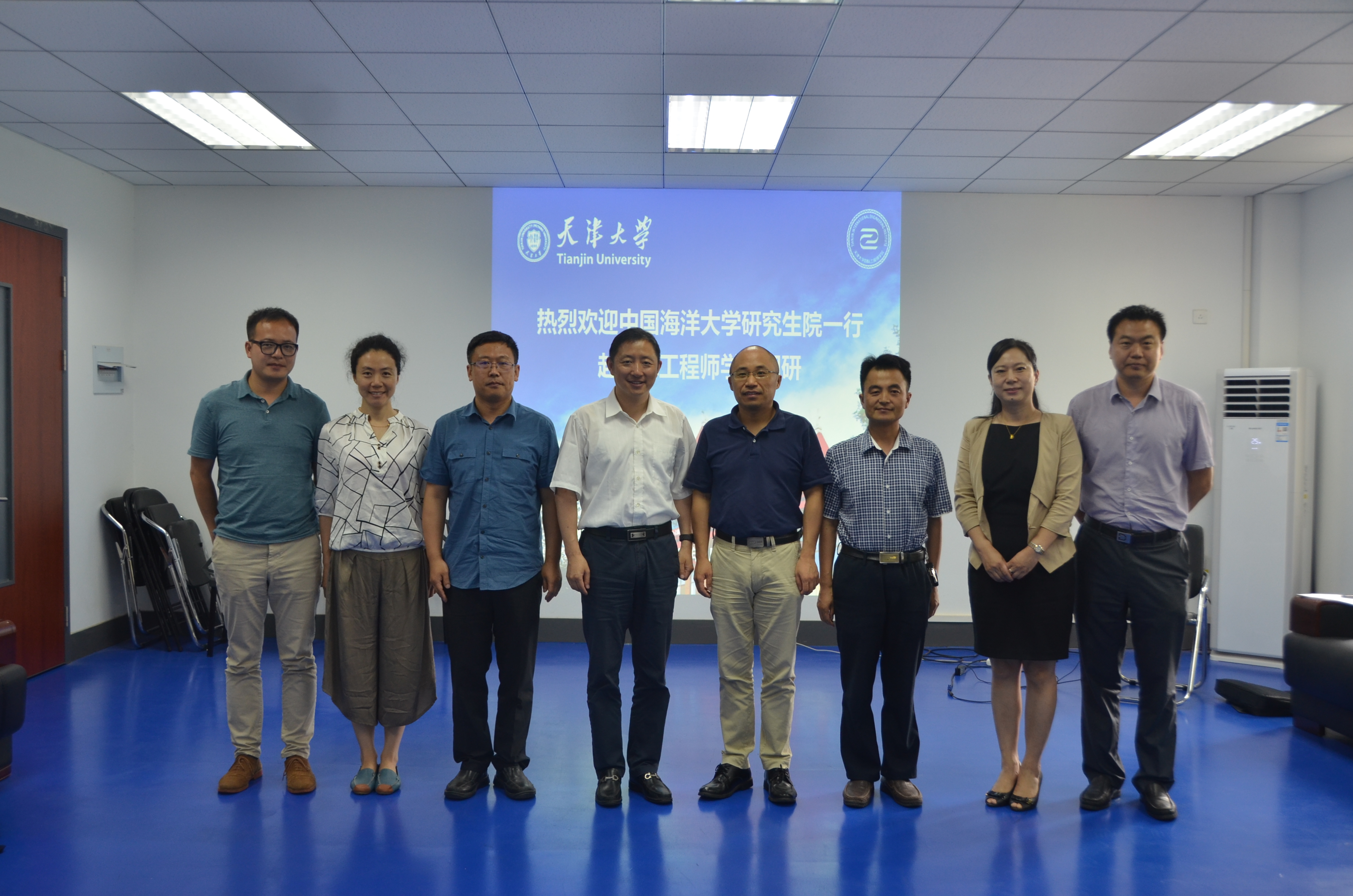 (Correspondent: Liu Yingtong) On July 10, 2018, Shi Hongda, executive vice dean of postgraduates’ school, Liang Bingchen, vice dean of engineering school, Liu Haibo, director of training office, postgraduates’ school, Qu Haipeng, vice director of computer specialty, information school, Zhang Hesheng, principal of Sino-France program of computer specialty and Mei Tao, secretary of training office, postgraduates’ school of Ocean University of China came to Tianjin International Engineering Institute for survey and exchanges. Shan Xiaolin, party secretary, Guan Jing, vice director of Qiushi Honors College, Tianjin University received their coming at Meeting Room 204, TIEI building and jointly held a discussion.