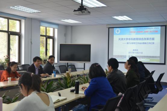 Firstly, Gong Jinlong, division chief of academic affairs office gave instructions to the attendees of the 4 parts content including the reform background, overall framework, documents explanation and detailed proposals of the education comprehensive reform initiative. He said that the new era has new requirements towards the higher education, and it is urgent to develop the higher education field with TJU characteristics, that is international first-rate and high level. He conveyed the conceptions and undertaking proposals of the comprehensive reform initiative of academic affairs office to the attendees --- that under the developing background of “Emerging Engineering Education”, we should adhere to strengthening the moral education and cultivating talents, centering on the development of students, being guided by “undergraduate-postgraduate integration cultivation”, and seizing the opportunity of “Emerging Engineering Education Construction” so as to construct the talents training system of “Chinese characteristics, world first-rate and TJU characters”.