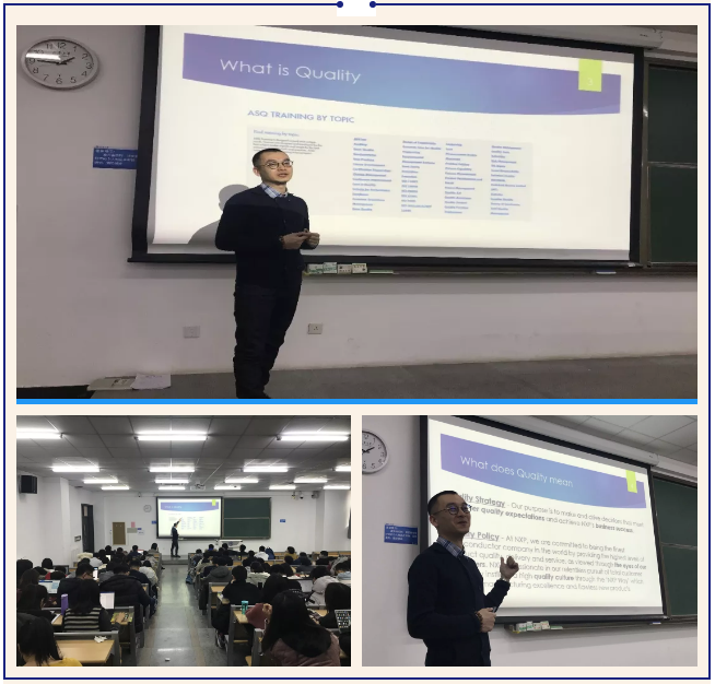 Li Wei first introduced NXP through two videos, and combined with his many years of experience in quality management, from aspects “what is quality, why do we manage quality, how is quality management deployed in an organization, quality management in product, automotive quality requirements”, he told the students about enterprise quality management and quality culture of NXP. At the end of the lecture, Li answered the students’ questions about quality management one by one.
