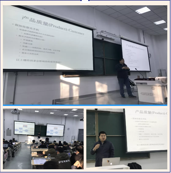 Professor He brought students a lively quality management course named modern quality management theory and method from four aspects “the basic concept of quality, how to carry out quality management, common quality tools and quality system”.