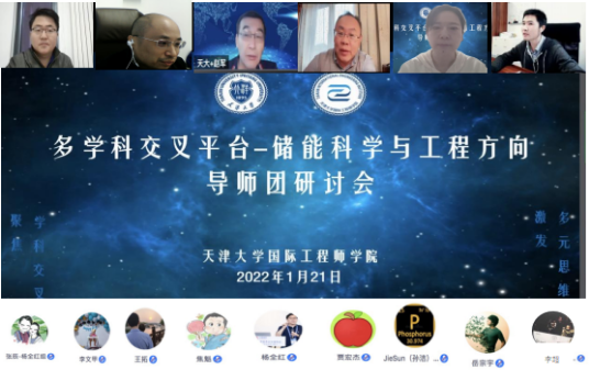 Tianjin International Engineering Institute ("TIEI") brought together all "masters" of the supervisor group and held the supervisor group seminar on the interdisciplinary platform in the directions of Energy Storage Science and Engineering and Intelligent Machine and System respectively on January 21, to actively promote the construction of interdisciplinary platform, solve interdisciplinary difficulties, pool interdisciplinary strength, facilitate interdisciplinary thinking collision, incubate the results of interdisciplinary scientific research projects, and improve the overall talent training quality. All supervisors of the platform, Shan Xiaolin, Secretary of the Party Committee of Qiushi Honor College, and Guan Jing, Vice Dean of Qiushi Honor College (Deputy Dean of TIEI) attended the meeting. At the meeting, they had in-depth discussions concerning scientific research and innovation of the platform, special courses development, student training and management, etc.