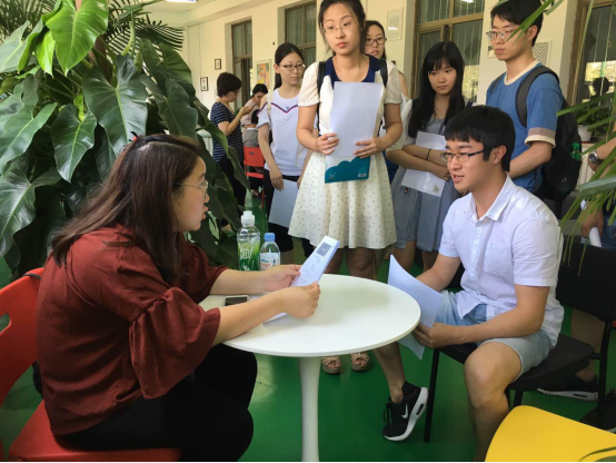 Duringthe conference, the staff from CETC firstly gave a publicity speech, introducing the working content, salary and welfare, number of employed interns and working location, and other information related to the summer internship. Then, the enterprise representatives and the present students came to the learning center on the first floor to submit the resumes and have the interviews. There was a lively atmosphere. The students stood in queue, waiting for talking to the targeted enterprises, acquire the information relevant to internship, the developing opportunities, and leave the resumes. This conference totally lasted for over 2 hours.