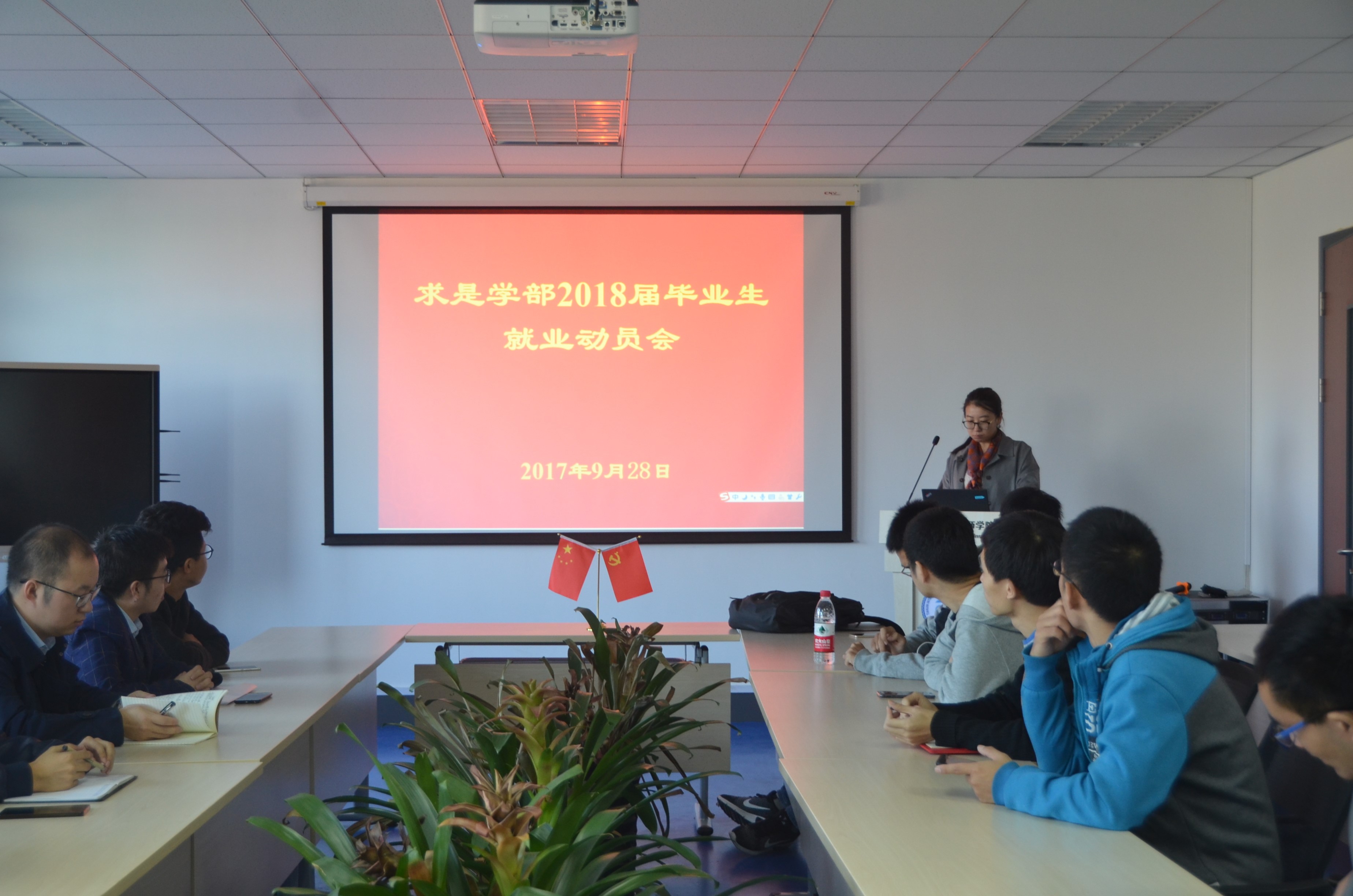 On October 11th, 2017, the seminar of employment policy and employment process for graduating students was held successfully in the meeting room of TIEI, Tianjin University weijin campus. Zhang Tianying, vice party secretary of Qiushi Honors College and Chen Wei, students’ instructor attended the seminar and gave detailed explanation of the employment policy and employment process for graduating students.
