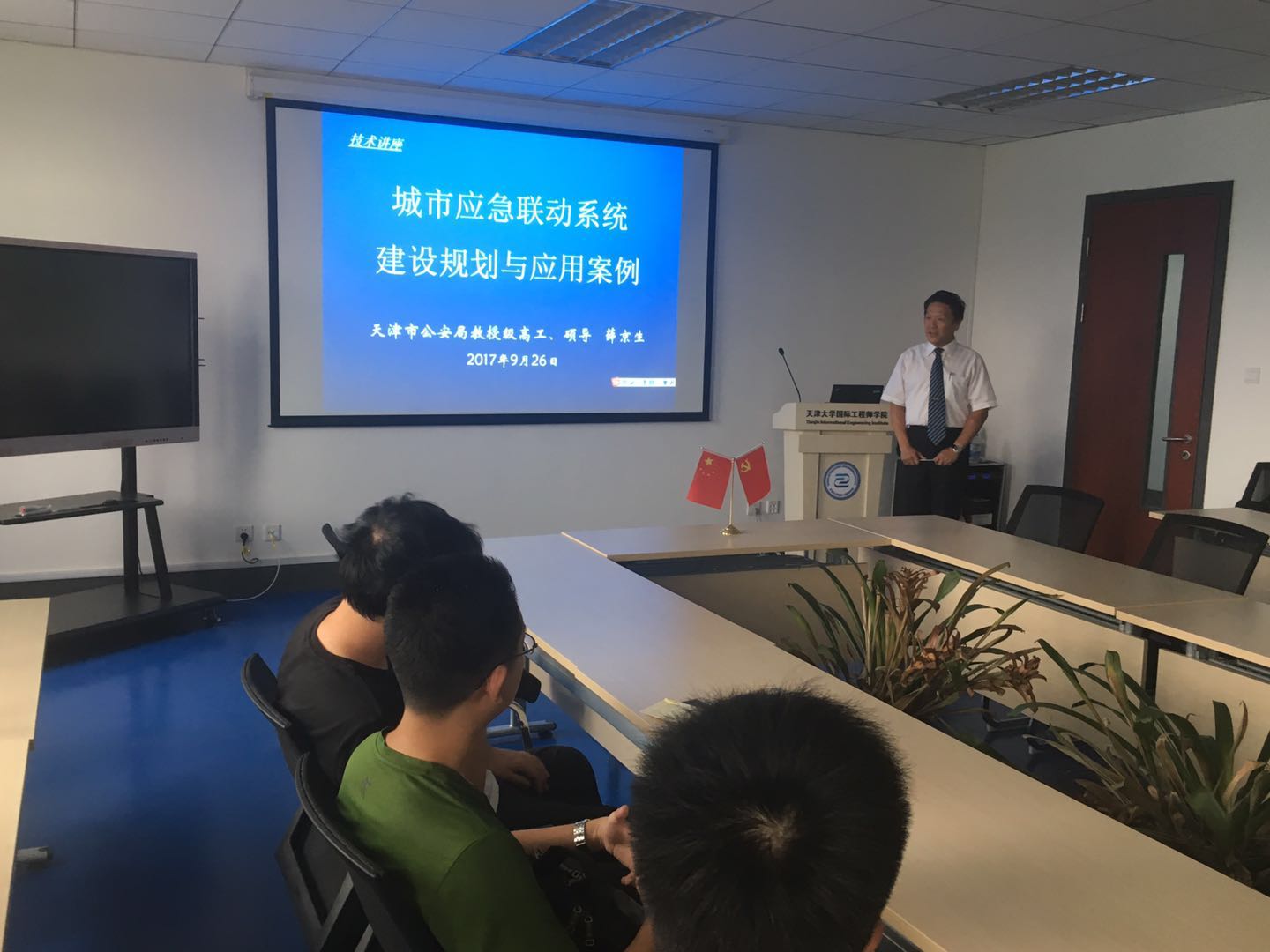 OnSeptember 26th,2017, professor Xue Jingsheng from technology informatization office, Tianjin public security bureau launched a speciallecturewith the topic of “ConstructionPlanning andApplication for Urban Emergency Linkage System” for TIEI studentswith the specialties ofcomputer science and electronics.